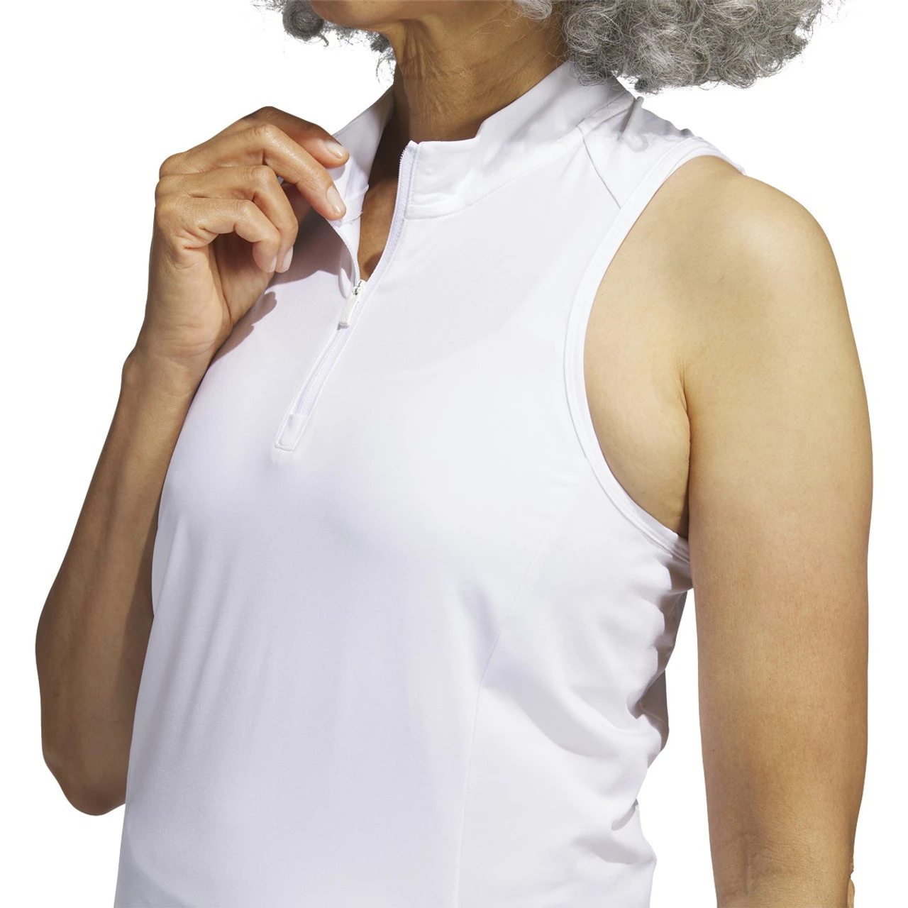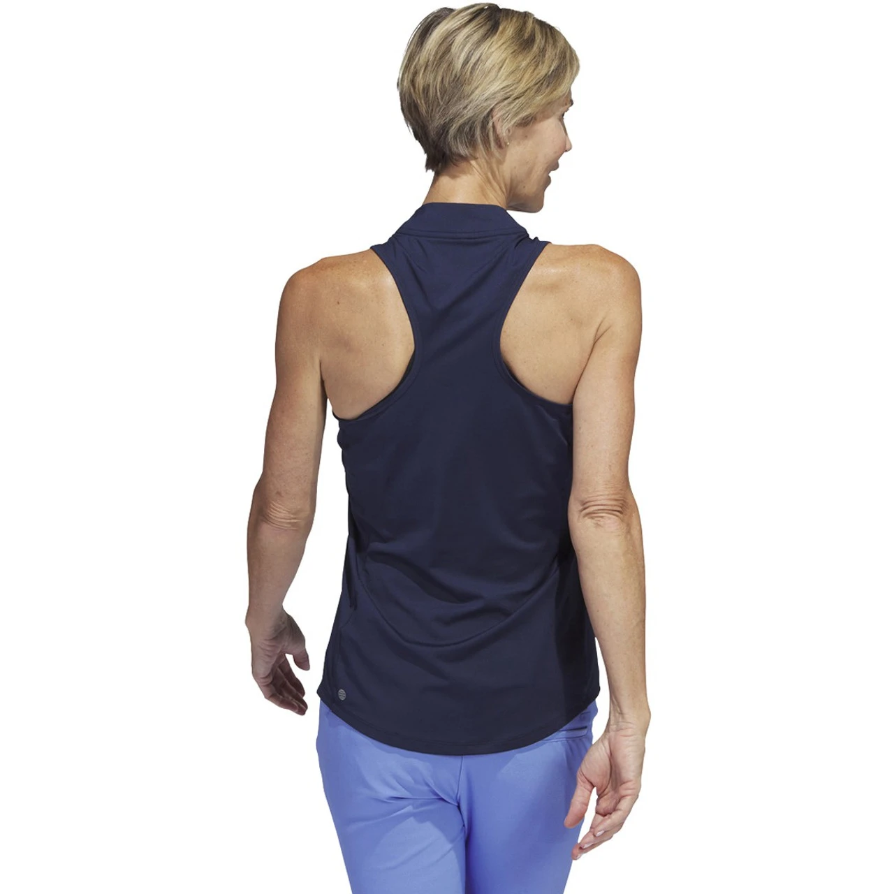 This women’s adidas golf sleeveless polo shirt is made of comfy single-jersey fabric with four-way stretch for mobility. The racerback design keeps you cool on the course. Made with a series of recycled materials, and at least 70% recycled content, this product represents just one of our solutions to help end plastic waste.
