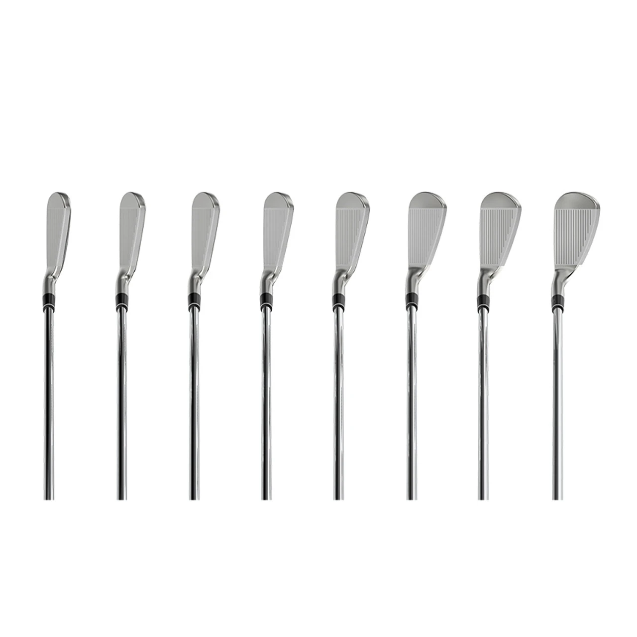 - PROGRESSIVE GROOVES – The 3i–7i feature wide grooves, ideal for longer shots in all conditions. The 8i–AW have deeper, closer set grooves which cut through grass and debris to enhance spin on approach shots. Laser milling between each groove, on every loft, enhances friction in all conditions. The result is congruency across the set, as spin, distance, and launch window remain as consistent as possible.